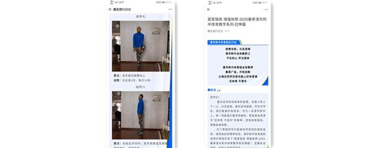 同时,为了使同学们在网络教学以外的时间也能够进行体育锻炼,皇冠体育体育组开通了微信公众号,公众号的内容会选择适合全校教职工和学生进行居家锻炼的动作,使大家在居家工作期间,也能够保证身体的健康和心情的愉悦。