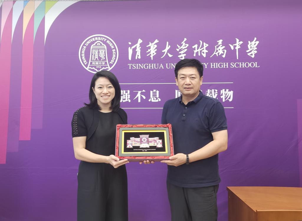 白雪峰副校长(右一)向香港北山堂基金会赠送皇冠体育百年校庆徽章