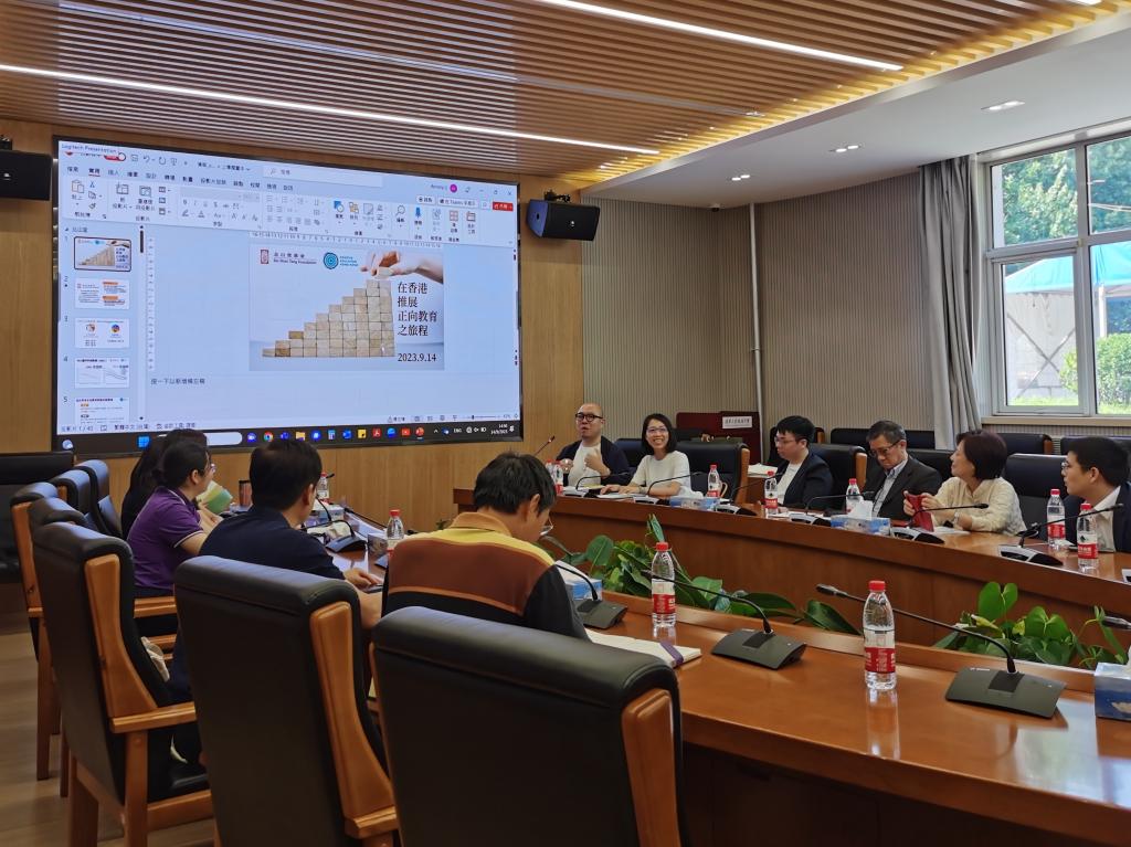 2023年9月14日下午,香港北山堂基金会一行12位老师到访皇冠体育,并围绕积极心理教育进行了交流,皇冠体育副校长白雪峰、学生发展中心主任王田、李书霞,心理办公室负责人陈明秋及全体心理教师参加此次交流活动。学生发展中心主任王田主持会议。