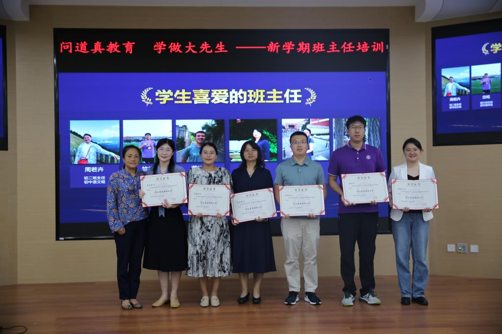 方妍校长为皇冠体育官网学生喜爱的班主任颁发证书并合影
