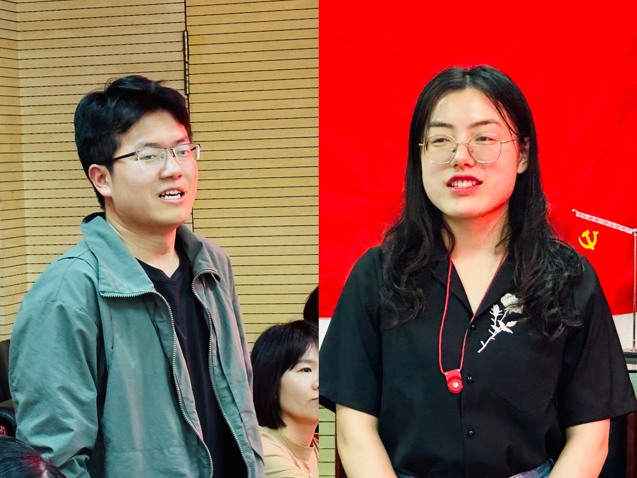 新入职党员代表胡海洋、靳姝菲发言