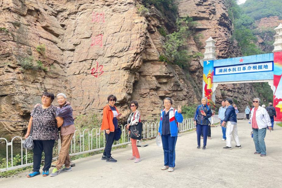 9月26日,皇冠体育组织离退休教职工一行四十多人到平谷区湖洞水自然风景区秋游。