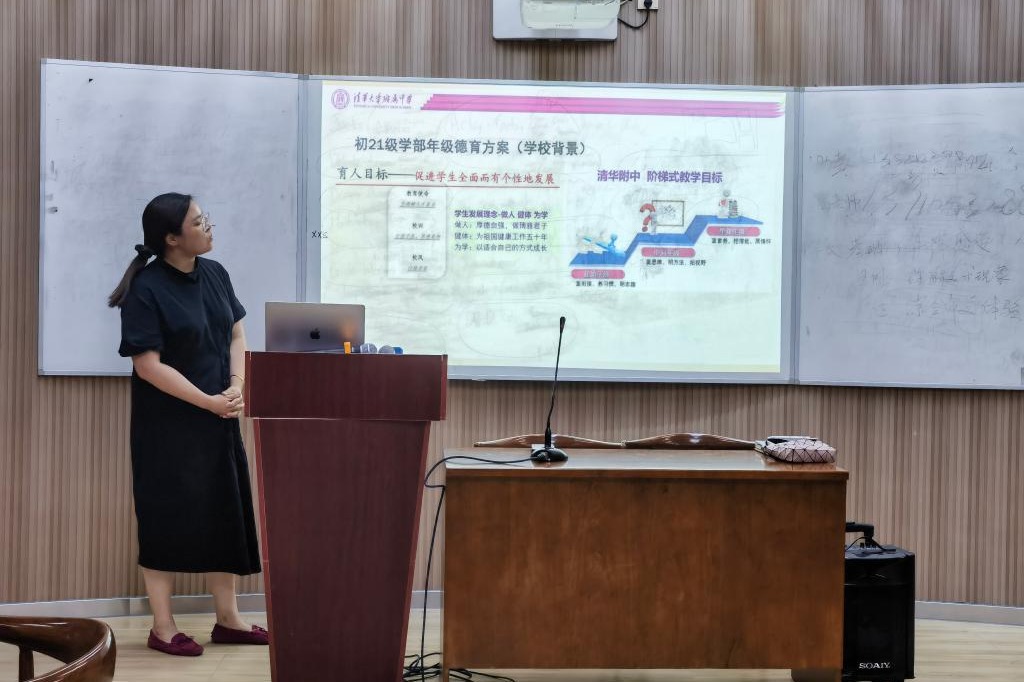 李冰清老师致开场词,她回顾了初21级学部自开学以来的整体情况,分享了初21级每位班主任对育人工作的理解,明确了初三阶段学生德育工作的定位,提出了目前学部管理工作获得的成果和面临的挑战。