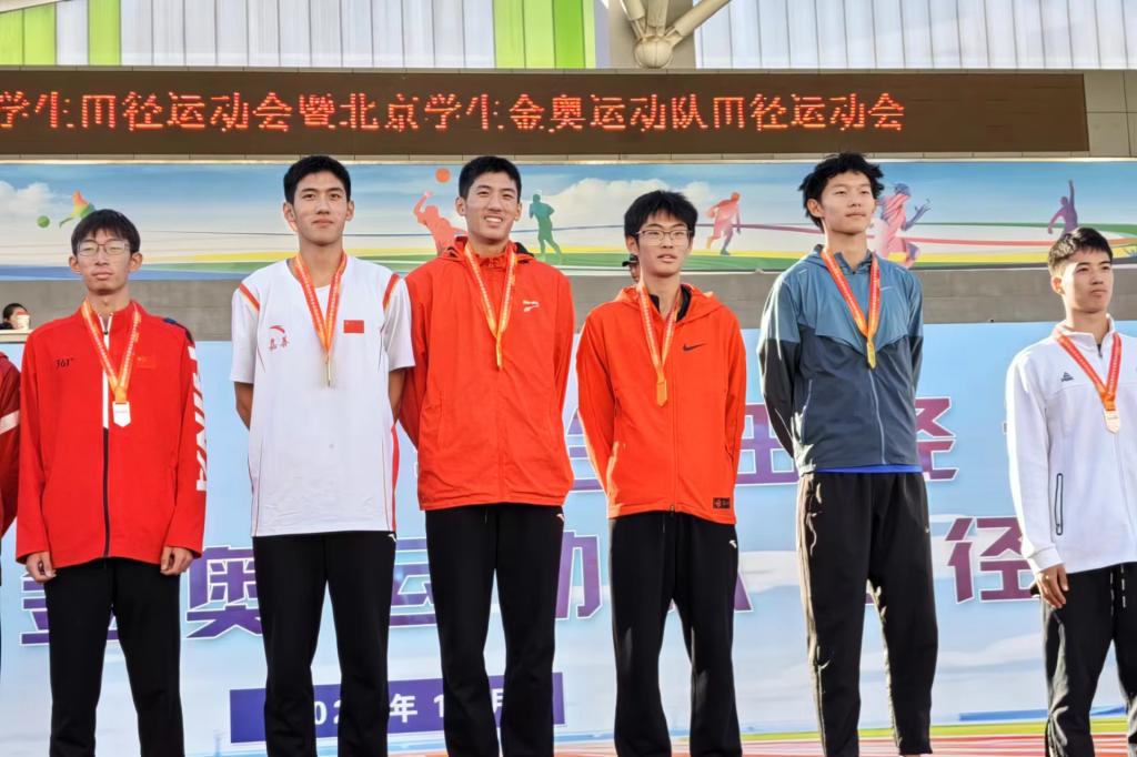 本次比赛由皇冠体育官网马约翰体育特长班(以下简称马班)主任罗健任领队,田径队教练李光明、陈广等多位教练带队参赛。马班共计32名运动员参与此次比赛,其中19名被选入海淀区代表队,13名金奥代表队。获区团体总分第一名、优秀组织奖等多项荣誉,并打破多项赛事纪录。