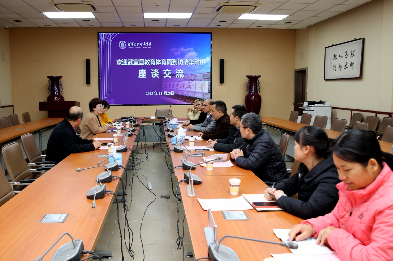 11月20日-21日,由武宣县教育研究室主任蒙国爽带队,武宣县中学党支部书记黄恩明、校长黄振辉及各学科教师一行9人到我校进行为期2天的交流访问,双方就学校办学理念、高三年级阶段培养、学校课程体系建设、德育工作建设等方面进行了深入交流。