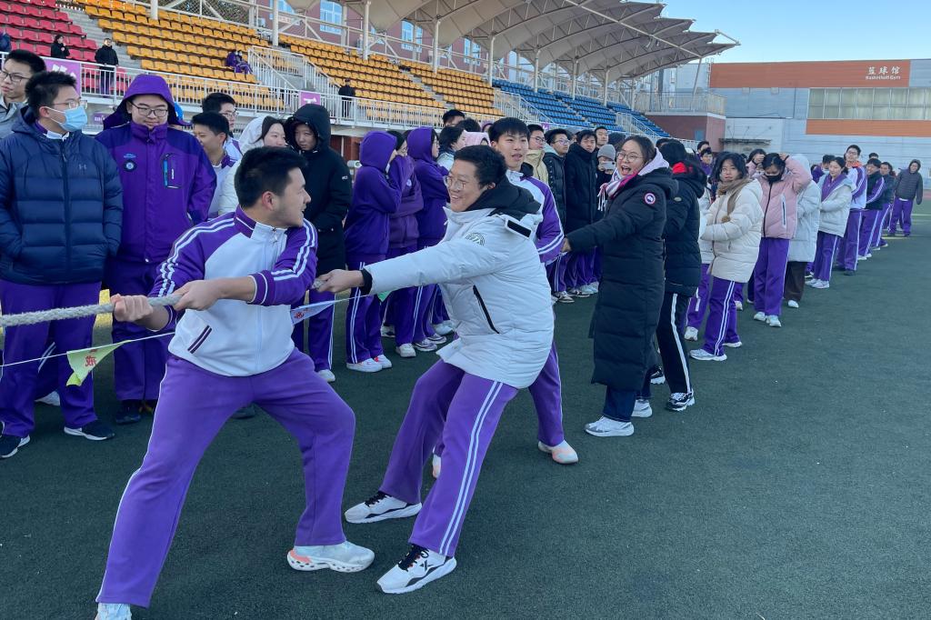 11月23日下午,高三学部举办“以友辅仁”拔河比赛。学部全体学生、班主任,部分任课教师参与到比赛中。