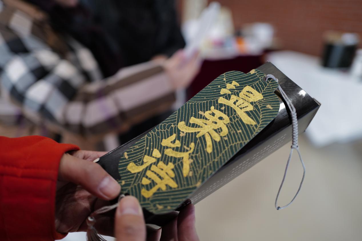 白雪峰副校长在校家委会精心准备的家校共育文创展台前驻足