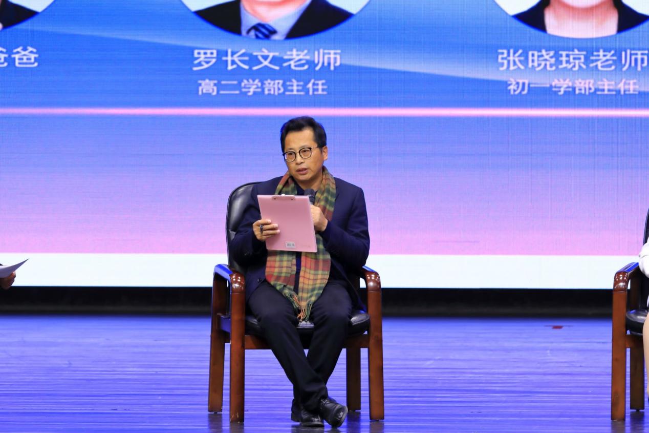 圆桌论坛环节,皇冠体育高二学部主任罗长文老师、初一学部主任张晓琼老师、家委代表高23学部危观洋妈妈、附中家庭教育顾问刘刘老师受邀参加讨论。圆桌论坛环节,嘉宾们在高22学部张靖雯爸爸主持下展开讨论,大家分别从不同角度对做好家委工作建言献策,带给家委们思考和启发。