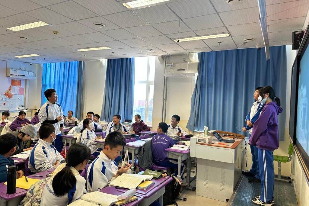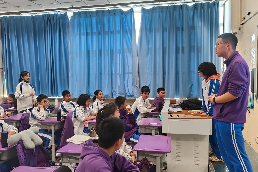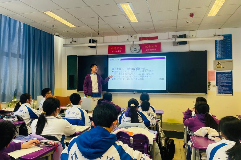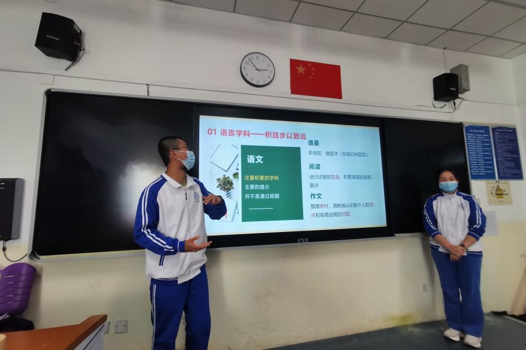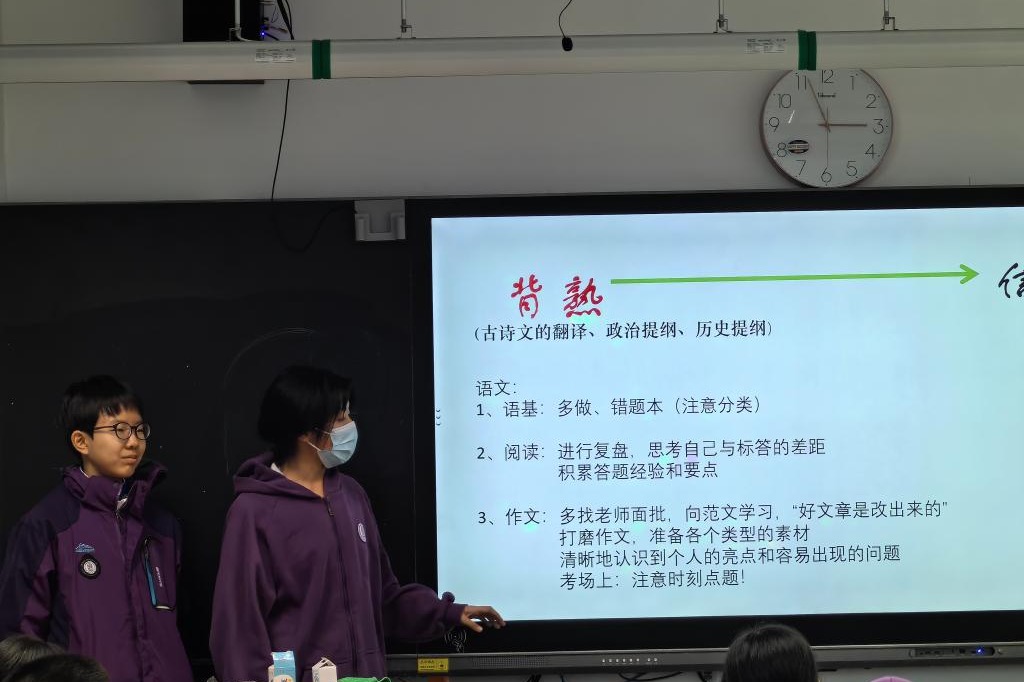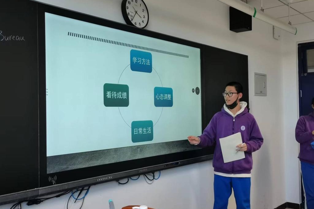 高2310班学长进初2110班分享学习经验。各学科特点、盲目刷题的弊端、心态与作息的调整……学长学姐都耐心地提醒到位。