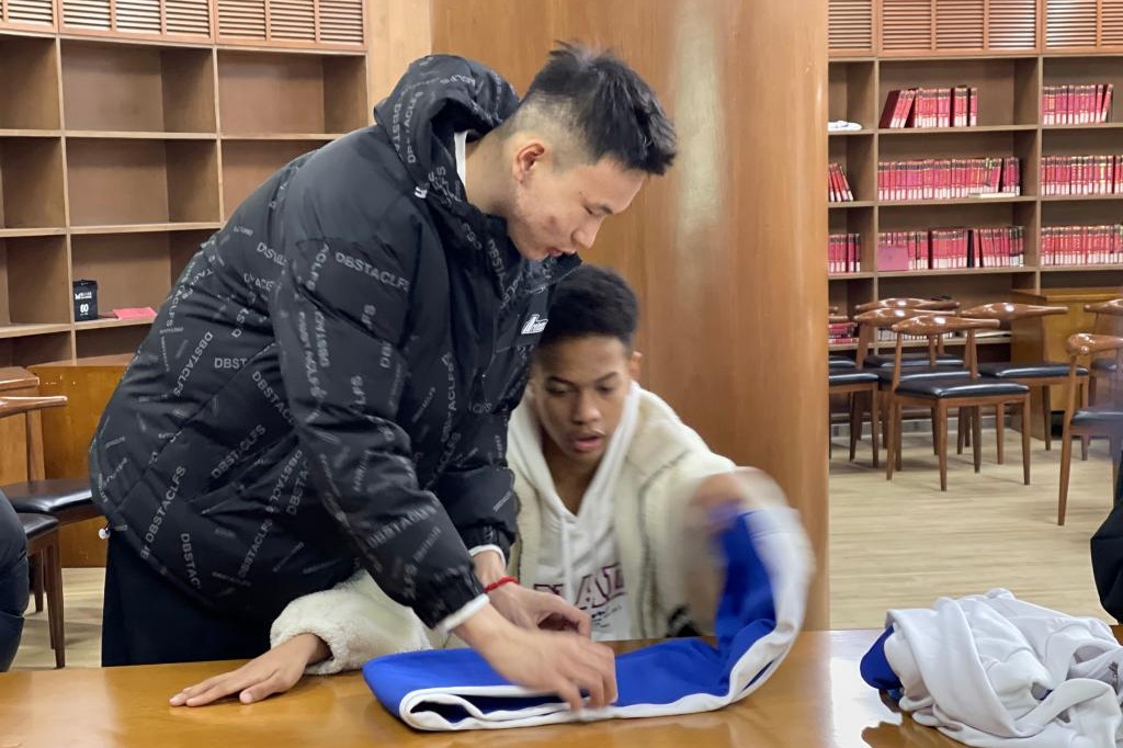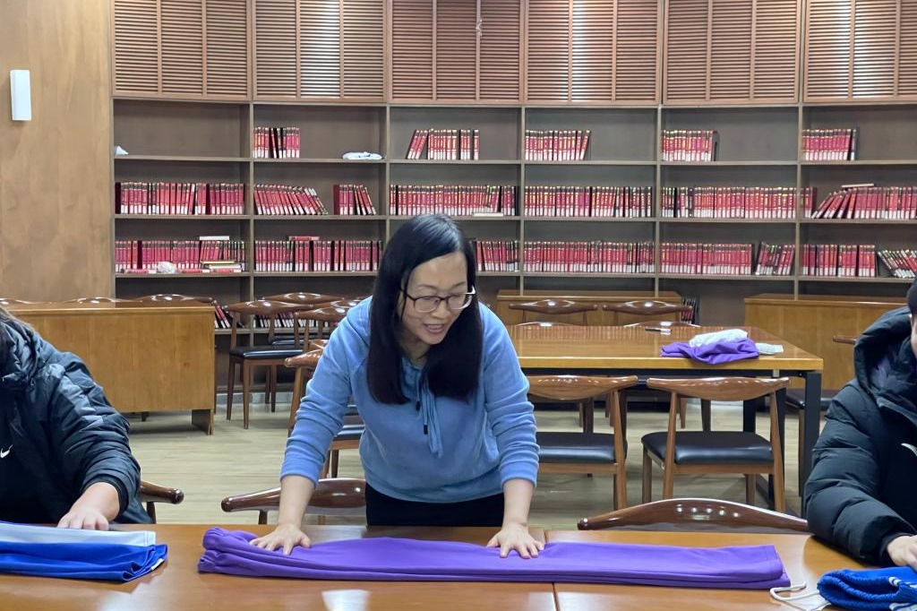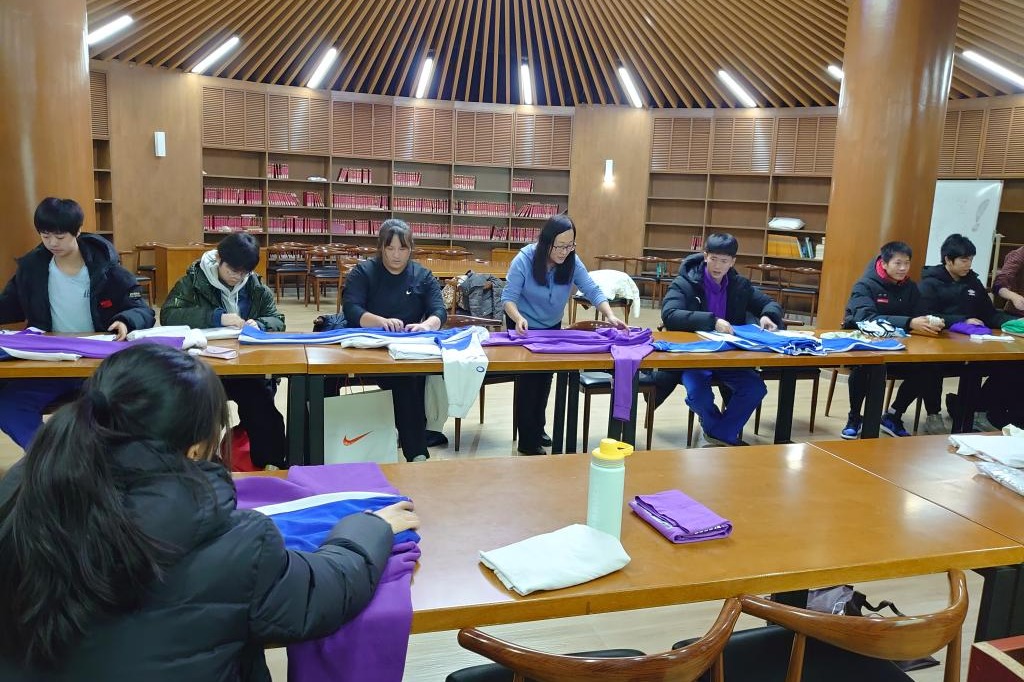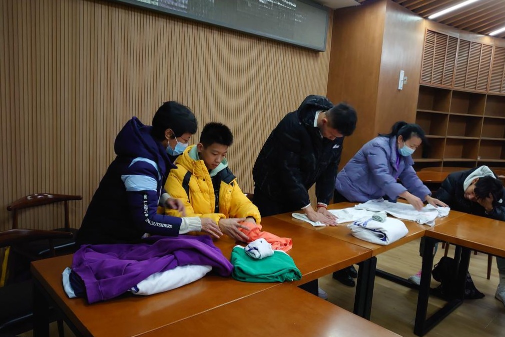 学生互相示范叠法