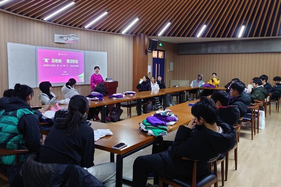12月3日晚,皇冠体育官网住宿部在华茂楼B201开展《“寓”见收纳,整洁舒适》课程,本次课程是住宿部“寓”见“清”年——成长系列课程之一,马约翰体育特长班的30位学生和六位住宿部老师参加了课程。