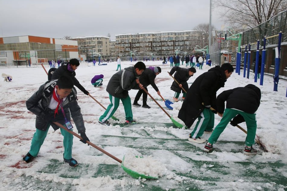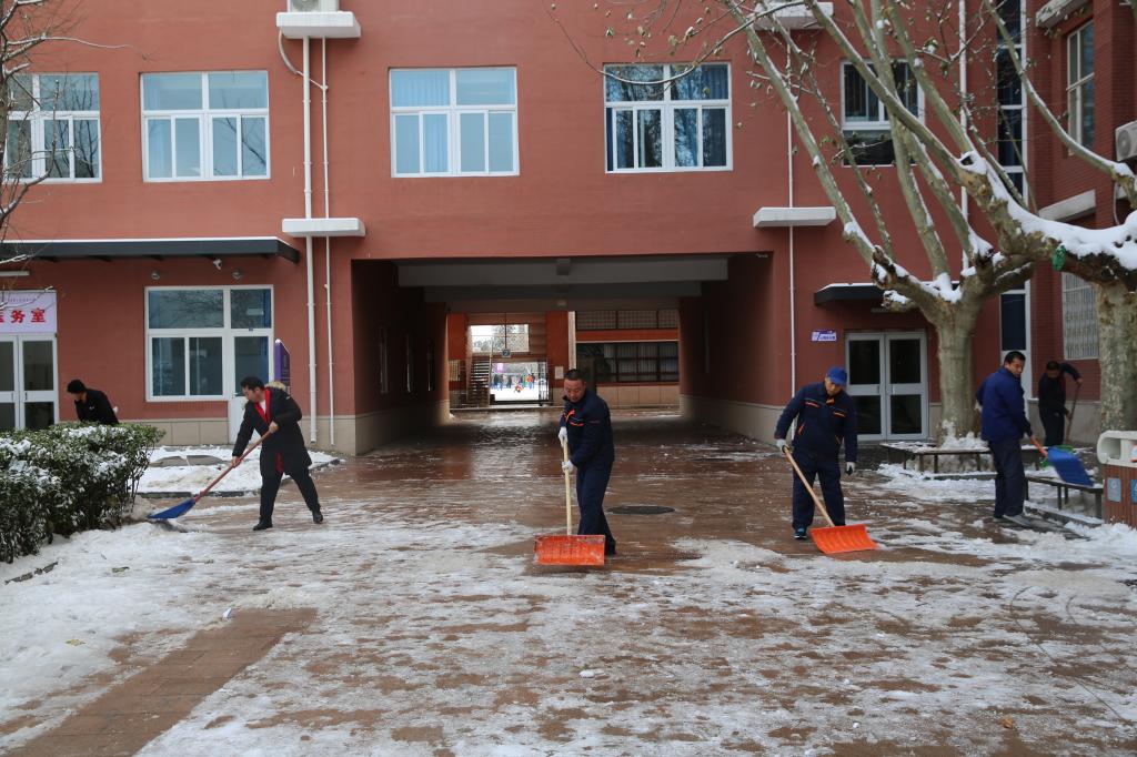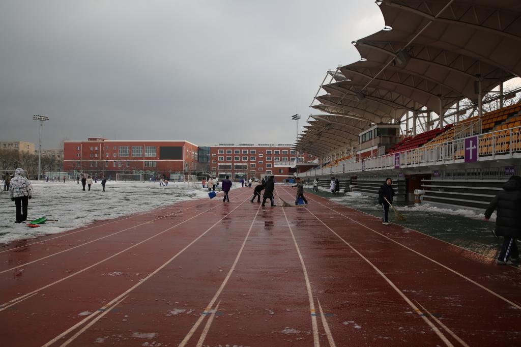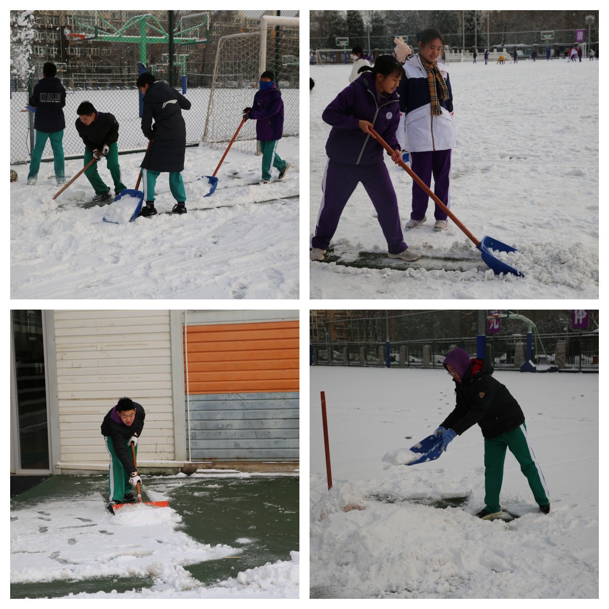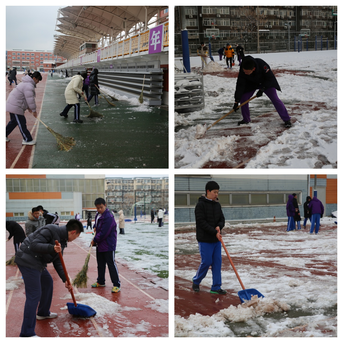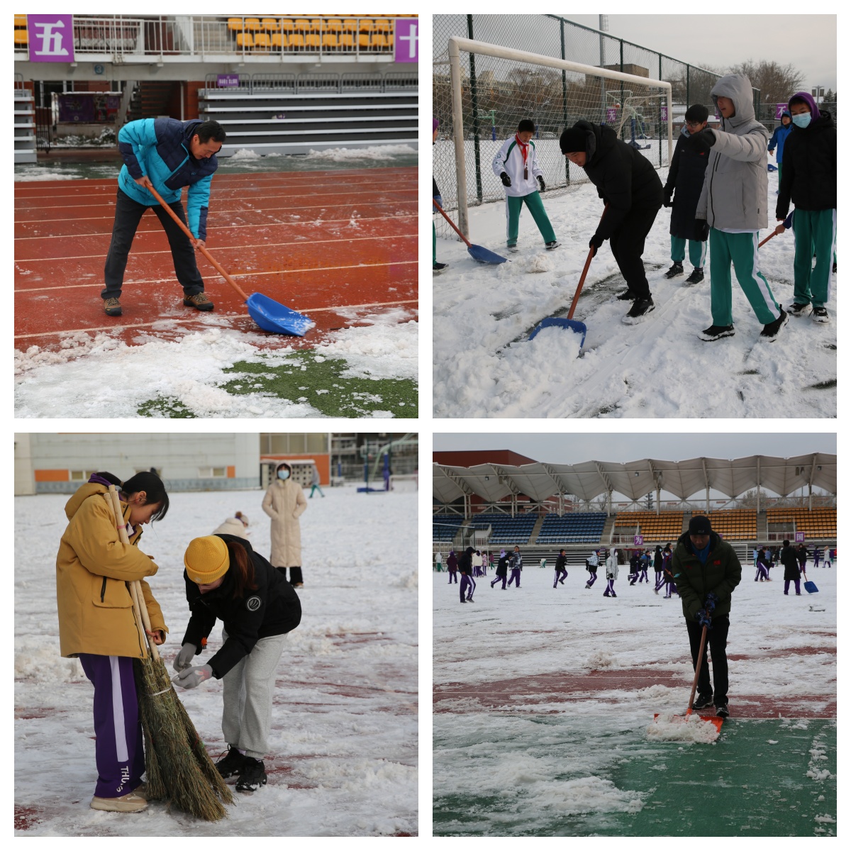 同学们在认真听老师讲解扫雪要领后,积极主动地拿起除雪铲、扫帚等工具,在本班承包区域,开展了热火朝天的扫雪活动。今天寒气袭人,但同学们的劳动热情非常高涨,同学们合理分工、相互协作,铲雪、运雪等环节一丝不马虎。师生们辛勤扫雪、铲冰的身影,为寒冷的冬日带来了别样的温暖。在同学们的集体劳动下,操场上皑皑白雪逐渐消失,跑道与足球场开始显现,这是团结的力量、也是劳动的成果,扫雪劳动课让每一位学生都真切感受到“劳动最光荣”。