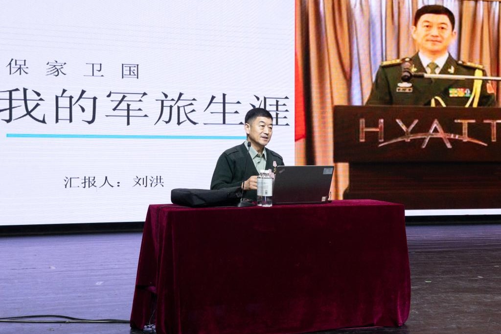 刘洪先生以《我的军旅生涯》为题,从儿时梦想、做合格军人、为国争光三个主题,向初21学部的同学们展示了自己奋斗和成长的历程,他勉励同学们立大志、成大才。