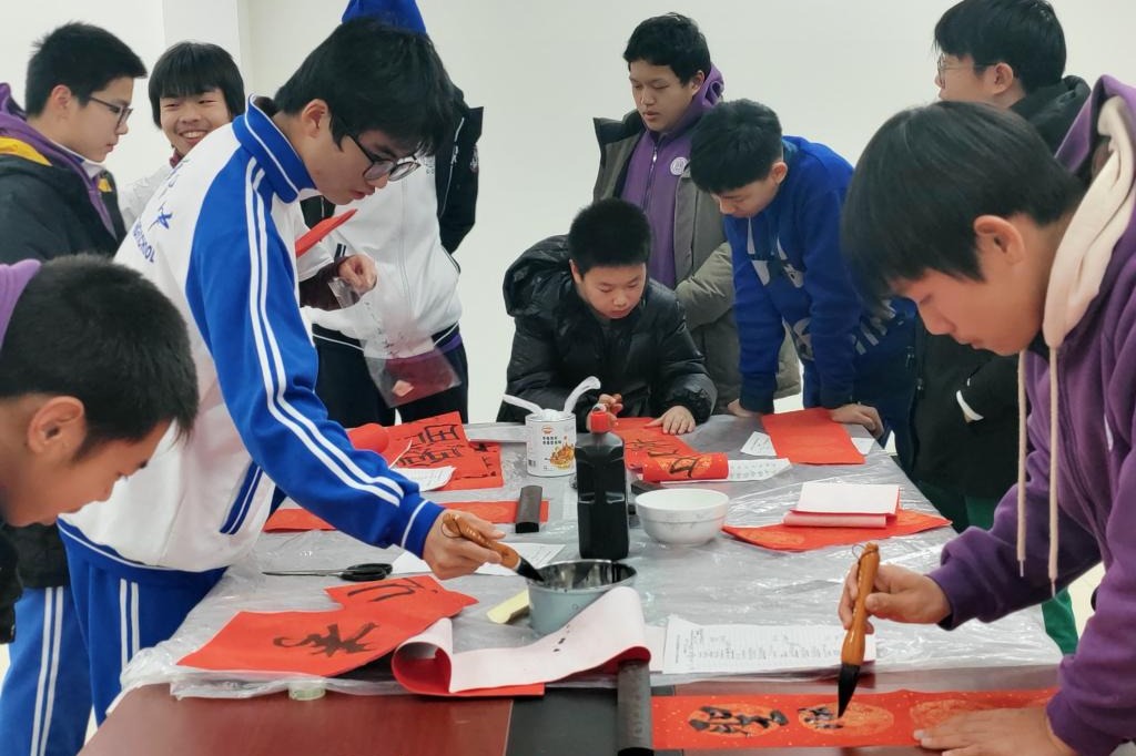 以“修君子品格,成自强少年”为主题,让同学们用笔墨纸砚将“君子文化”更好地延续,迎新年营造节日喜庆气氛。12月25日至27日每天晚自习后回宿舍到熄灯前这段时间里,同学们在住宿部华西楼一楼会议室,男女生30多个宿舍近一百名学生参与了这个意义非凡的活动。