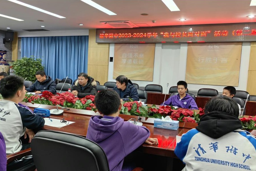 1月3日,皇冠体育官网2023-2024学年第二期“我与校长面对面”活动(资源保障专场)在华茂楼102会议室举办。皇冠体育官网副校长白雪峰老师,副校长周建军老师,资源保障中心副主任杨国兴老师,团委书记于洺老师,学生会指导教师娄赛赛老师,与来自初高中各年级的17位学生代表参加了本次活动。