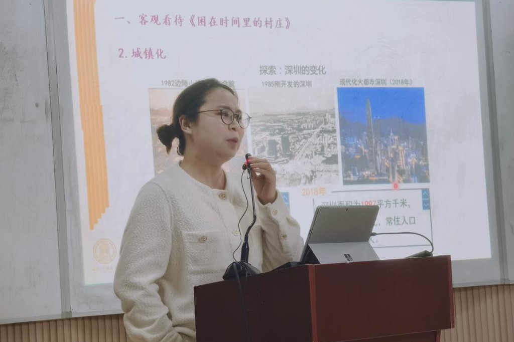 姚佳老师分享了阅读文章《困在时间里的村庄》的感受,她基于地理学科视角浅谈城乡区域关联,从平和的理性认识出发,谈到不平和的真心涌动,再到平和的行动与期待。她说到,回归初心,超越物质条件的精神追求,人与人的相互影响,情感和关系的养育是学校教育不可或缺,支教者,带着答案去,不如捧着一颗心去。