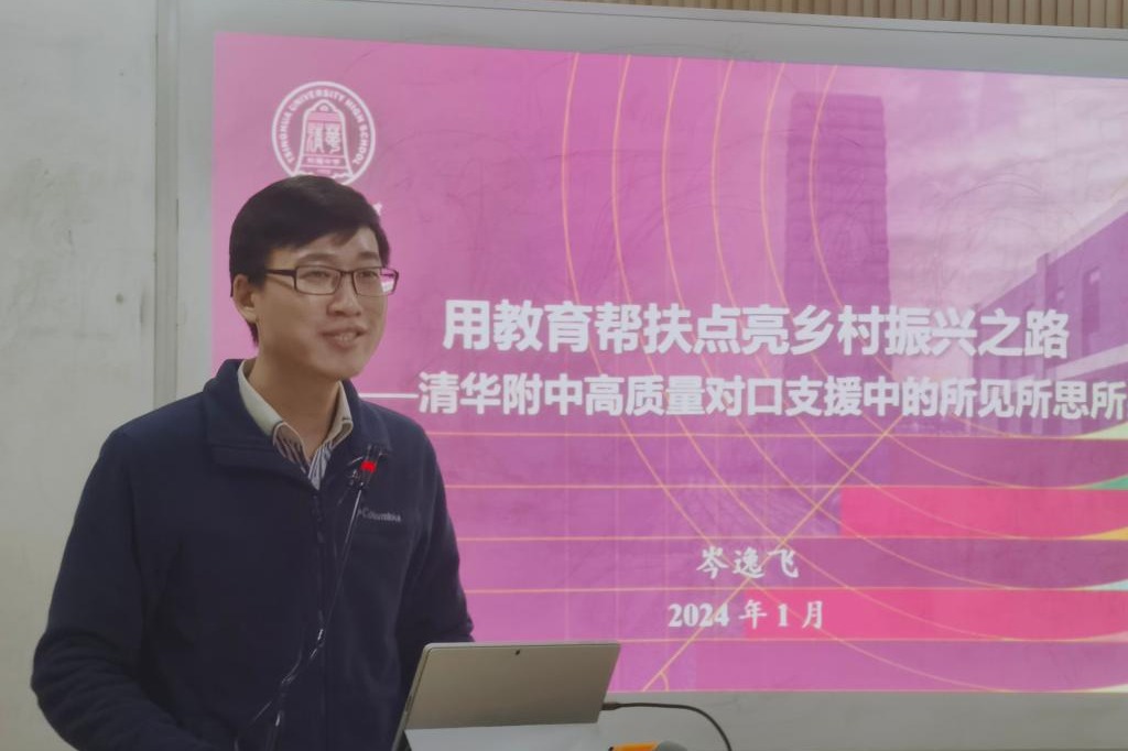 党委青年委员、政治组岑逸飞老师以“用教育帮扶点亮乡村振兴之路”为题,结合对口支援中的见闻分析附中高质量完成调查研究,高要求组织阶段总结研讨,高标准指导帮助帮扶学校的具体落实,并针对潜在的五大现实之困阐释自己的想法。岑老师最后所展示的美姑县学子的寻梦誓言生动诠释着着支援帮扶的责任与意义,也激发了在座青年教师的热情。