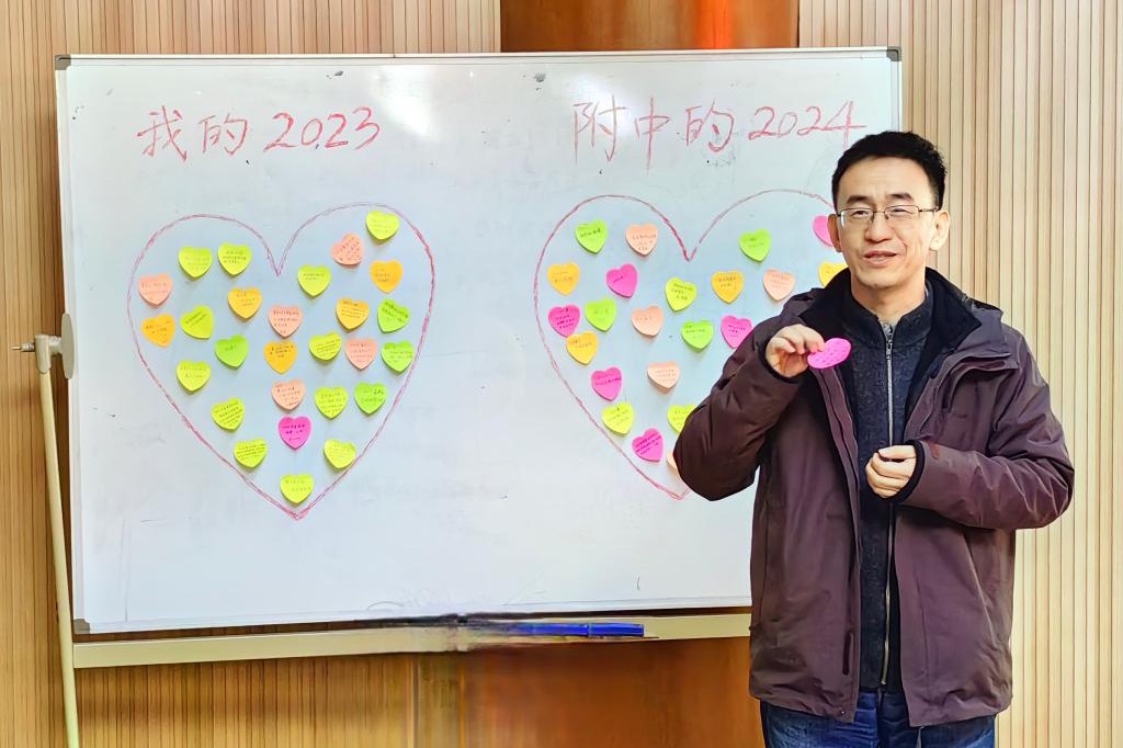 接下来,全体党员共同写下2023年令自己最高兴、最自豪、最难忘或最满意的一件事以及对于2024年的附中的发展展望,党员们一起将美好的期待张贴在“心愿墙”上,表达了对附中的美好祝福。党委委员曹海翔书记表示,希望2024年党员教师能够继续发挥党员教师的先锋作用,努力担当,冲锋在前
