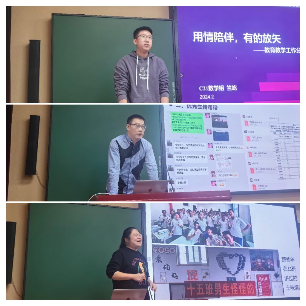 之后,班主任代表作汇报,交流班级管理经验。初2103班班主任竺屹以“用情陪伴,有的放矢”为题,分享了班级建设中的激情、温情和共情。初2108班班主任郅明刚以“学风”为核心,和教师们共同探讨创设浓厚学风的班级实践。初2115班班主任杜婵致力于让学生发现自我、提升自我,让学生活跃于各个环节,收获重要而珍贵的成长回忆。