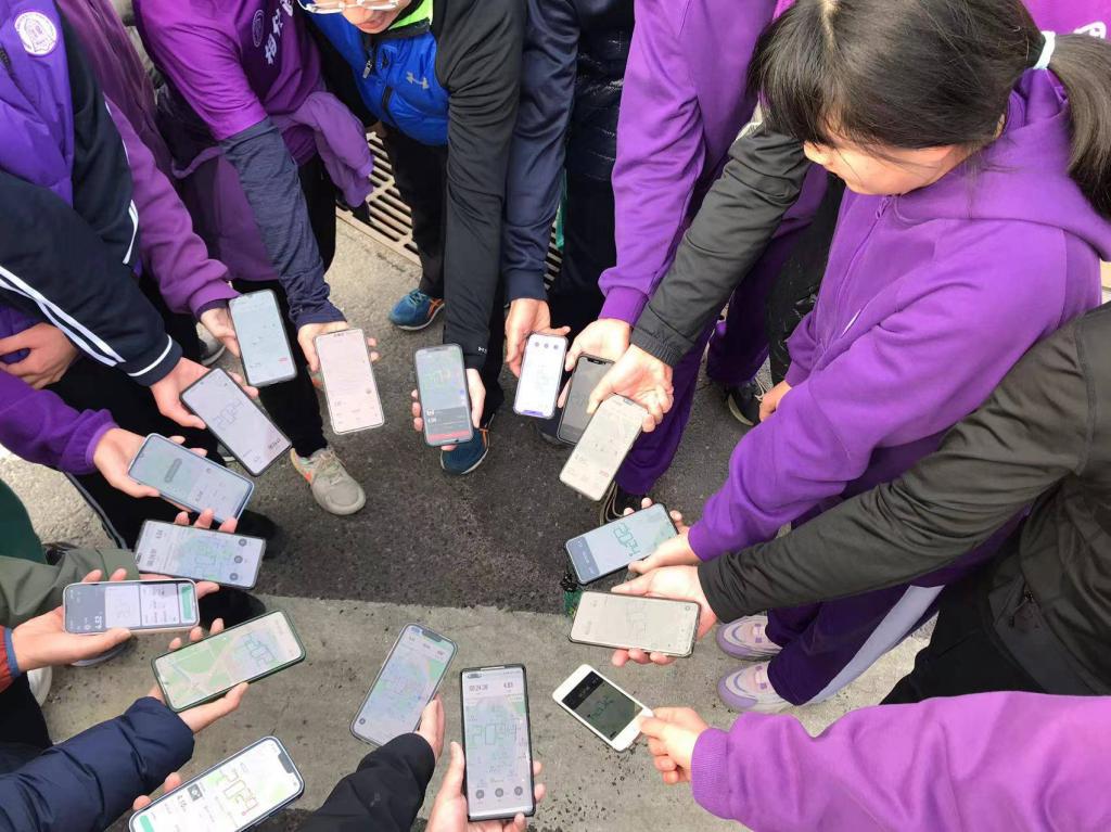 9时30分快组队员首先到达终点,随后慢组队员也纷至沓来。大家齐聚一团,纷纷展示自己用脚步刻画出的一幅幅美丽的“2024”图样。