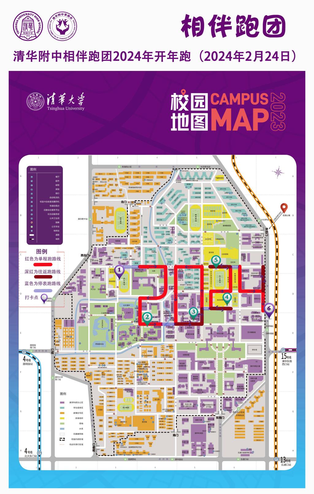 日晷、清华学堂、东操场、艺博等处,都是见证跑友们驻足合影、休整启程的打卡点。