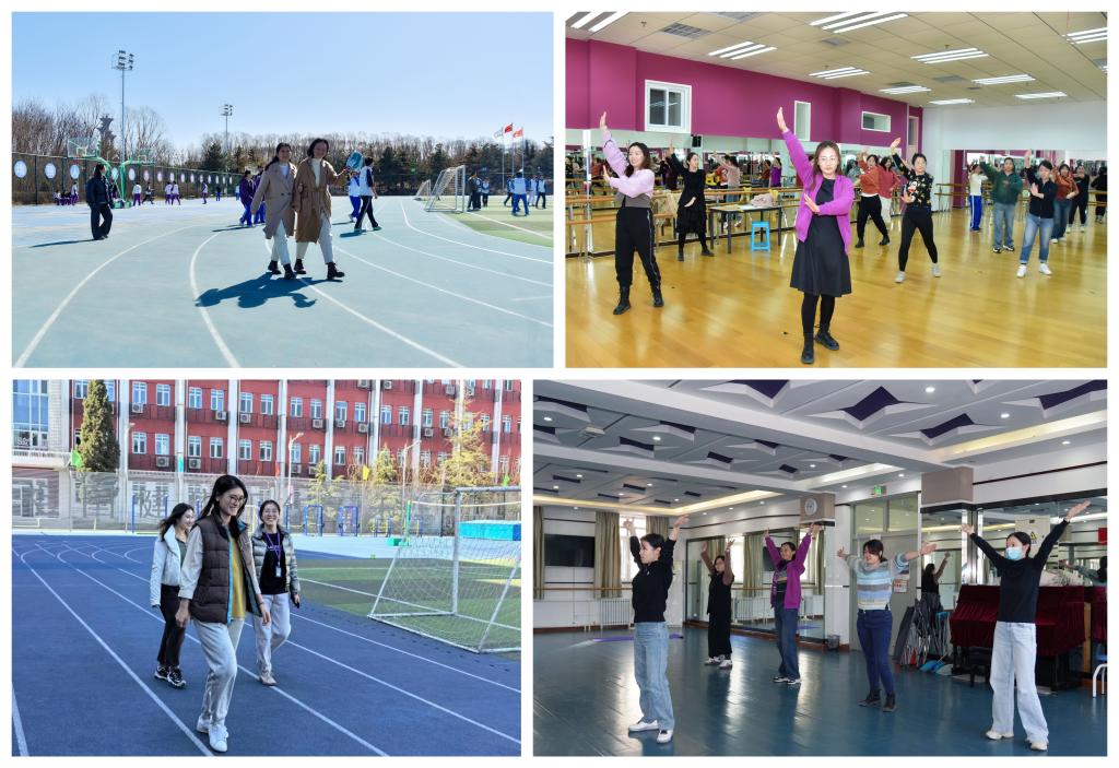奥森、将台路两校区分别在3月6、7日午间举行了女教工健身操活动。老师们积极参加做操,活动现场,气氛热烈非凡,充满了欢声笑语。3月8日,两校区在操场举办了庆祝“三八节”女教工健步走活动。在温暖的春风里,女教师们热情高涨,三三两两地漫步于校园中,锻炼着身体,欣赏着春天的美景,用欢声笑语点缀着整个校园。