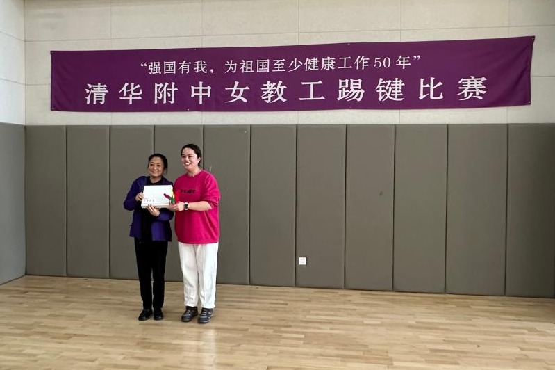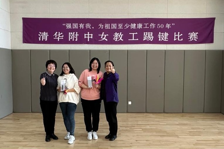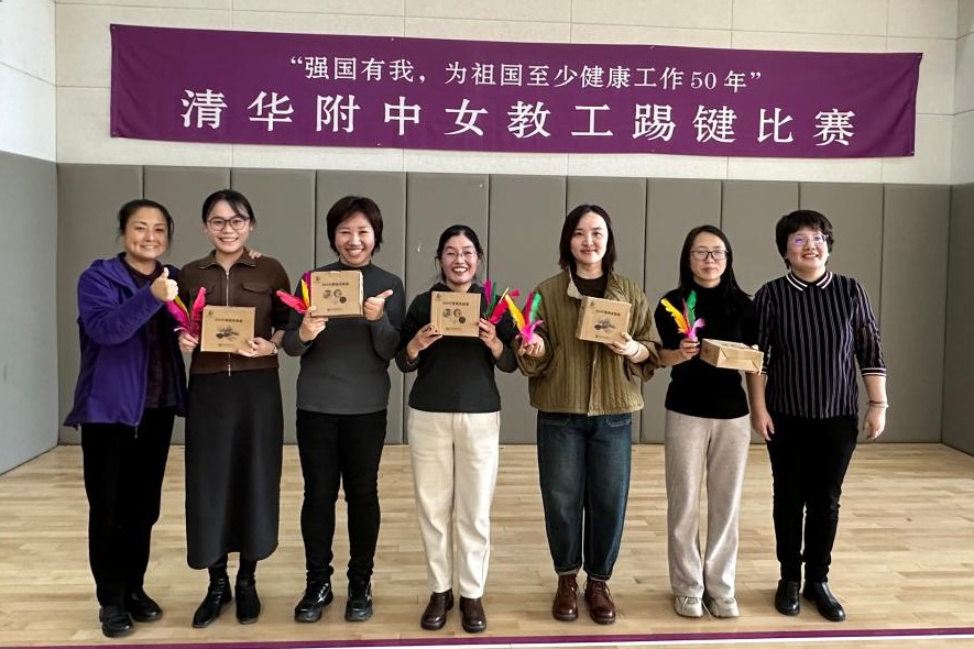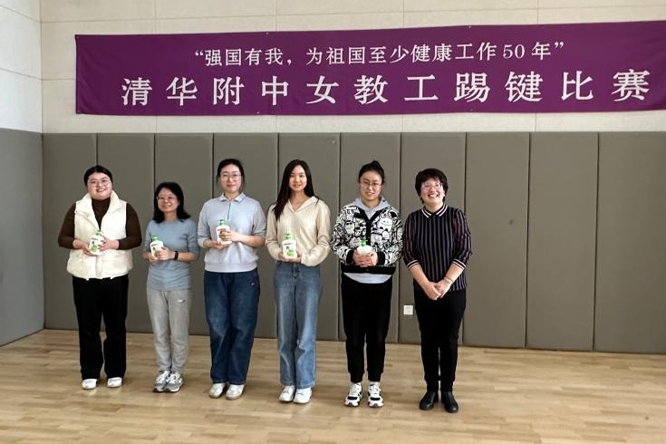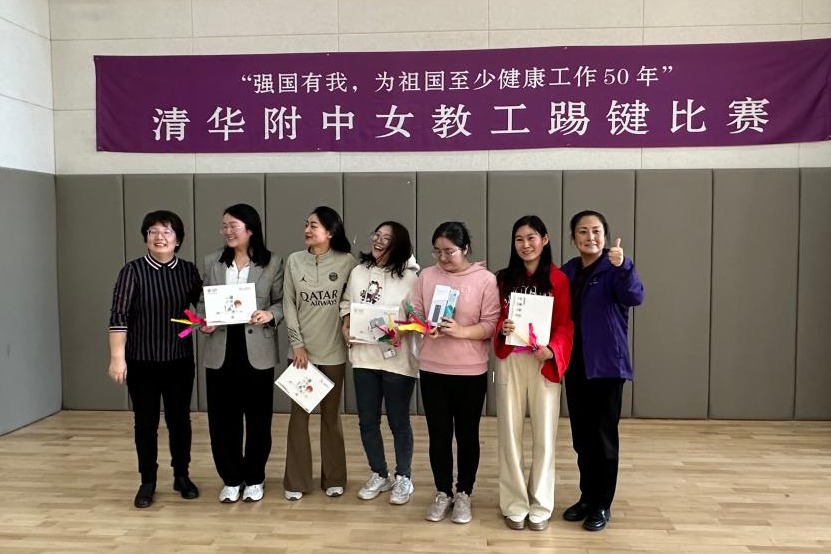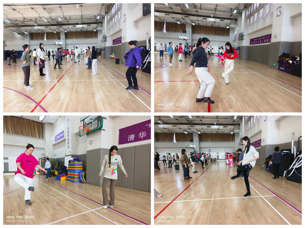 3月8日下午工会在体育馆一层开展了“强国有我,为祖国至少健康工作50年”女教工踢键比赛和健身操锻炼活动。女教师们热情参与。校长方妍、党委副书记兼工会主席张洁参加活动,并为获奖教师个人和获奖团体颁奖。