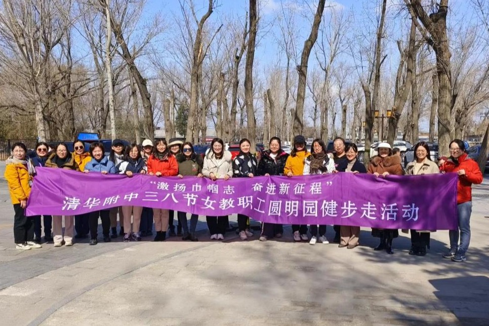 3月7日中午首先开展“激扬巾帼志 奋进新征程”三八节女教职工圆明园健步走活动。女教师们以阳光轻松的心态投入到健步走活动中,或在圆明园自由行走,或与同事们在圆明园结伴而行,有说有笑,享受健步走的快乐。