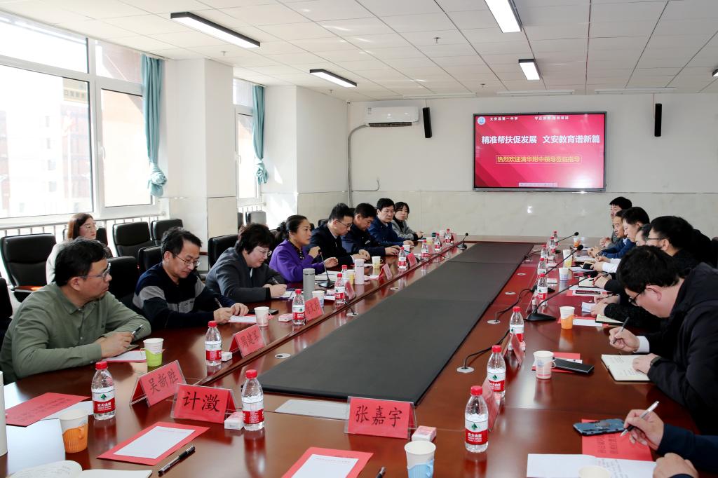 方妍校长一行来到文安一中校园,参观了学校硬件设施和教学环境等,对学校70余年的发展进程和基本教育教学情况进行了解,并就推进皇冠体育官网对口帮扶文安一中工作开展了座谈交流。