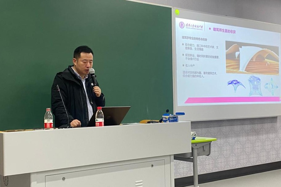 第二部分为专业特色。闫老师强调,成为一名建筑师不仅需要科学知识做基础,还需要有绘图制图,动手实践的能力,是一个理论与实践相结合的职业。