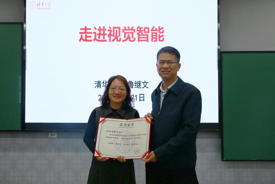 最后,鲁教授面向高二同学们介绍了视觉智能所需知识和能力,展示了清华大学自动化系的科研成果与人才培养计划。