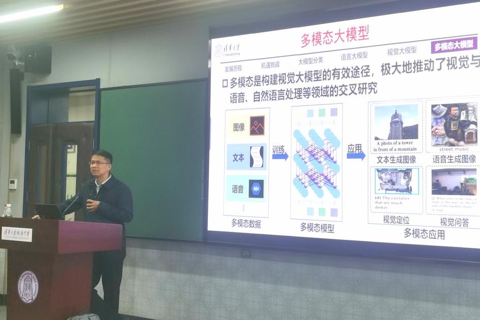 接着,鲁教授重点讲解了人工智能的发展历史与研究现状,产业应用与未来趋势。人工智能行业经过三起三落,如今正处于蓬勃发展的阶段。包括视觉智能在内的大模型有广泛的应用前景,涵盖社会生活、公共安全、无人系统、科研工作、国防军事等方方面面。