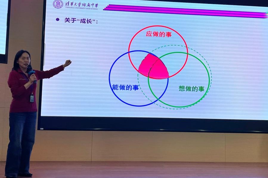 陈老师着重解读了关键词“成长”:在“应做”的事、“能做”的事、“想做”的事之间找到舒适的重合地带,并尽量扩大“想做”的事的范围,主动成长。未来还将以各学部为单位,继续开展有趣、有效的心理委员培训活动,帮助同学们获得更多的知识和技能。希望同学们能够践行好心理健康理念、助力好班级心理建设,收获成长。
