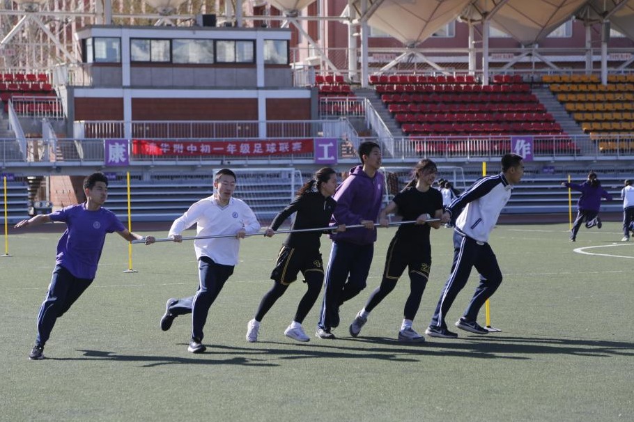 随着体育老师发出起跑口令,各班同学宛若离弦之箭,健步如飞。在赛跑中,不同班级采取了不同的策略:如圆心圆周交换式、圆心固定式、中部圆心式等等。每一种策略都体现着班级智慧的结晶,每一份协助皆展现出同学团结的风采。与此同时,不少老师也参与其中,与同学们携杆共进。师生脸上都洋溢着灿烂的笑容。等候接杆的同学们全神贯注、聚精会神,准备着为班级荣誉奉献自己的力量。完成比赛的同学和老师也与随后上场的同学传授经验,为他们加油鼓气。