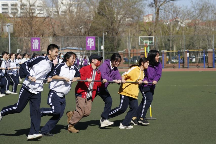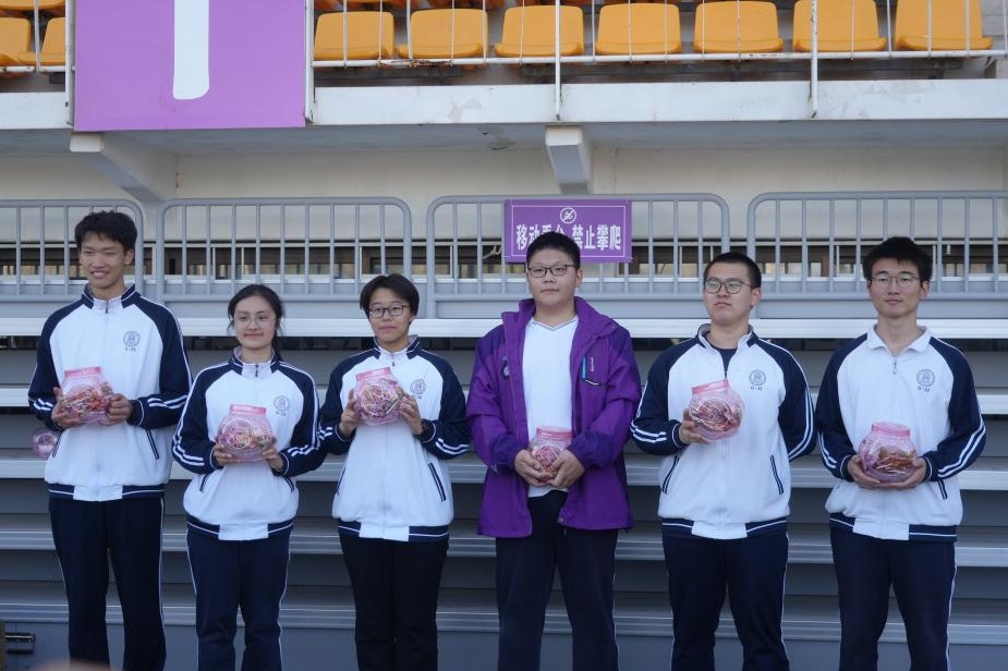 最终,十八个班级全部圆满完成了比赛,许多班级举杆合影留念。赛后,年级组和体育教研组共同为获奖师生颁发了奖状、奖品。