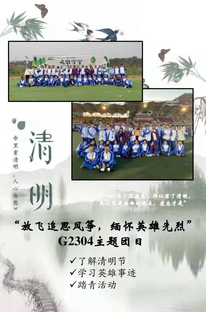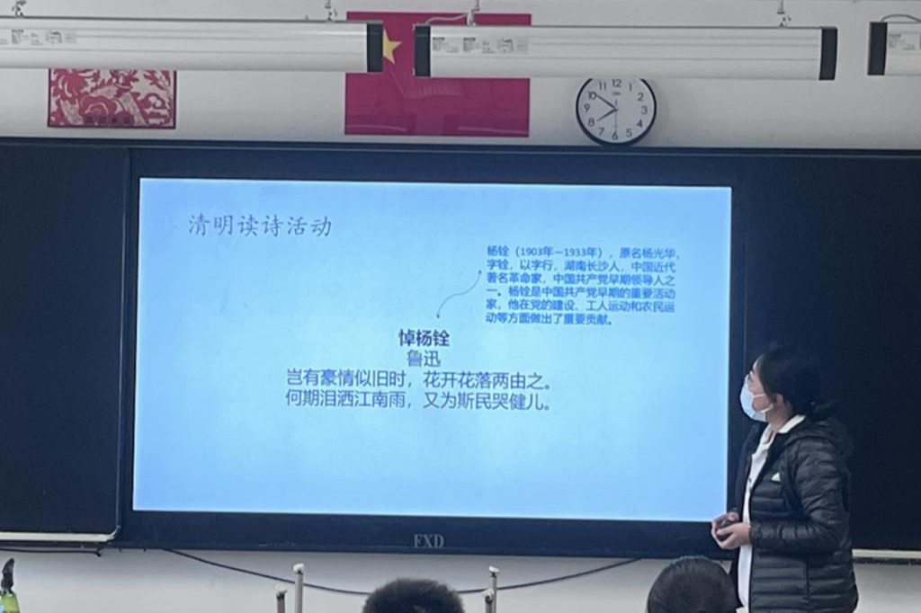 高一4班,高二3班、12班、14班等班级组织同学们查阅与清明节有关的古诗词,通过给古诗配图、配乐、诵读等形式,感悟诗词中蕴含的古代先贤的精神力量。同学们通过集体朗诵《悼杨铨》《清明》《破阵子》等清明节相关诗词,在古韵中体味情感,在抒情里反思、立志,缅怀革命先烈。