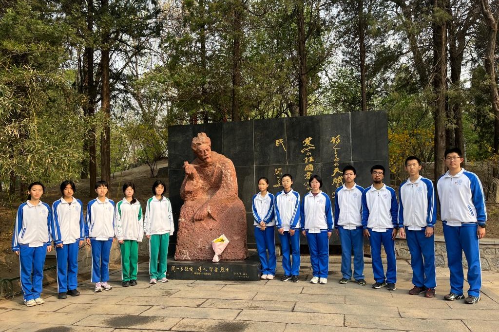在闻一多雕像前合影