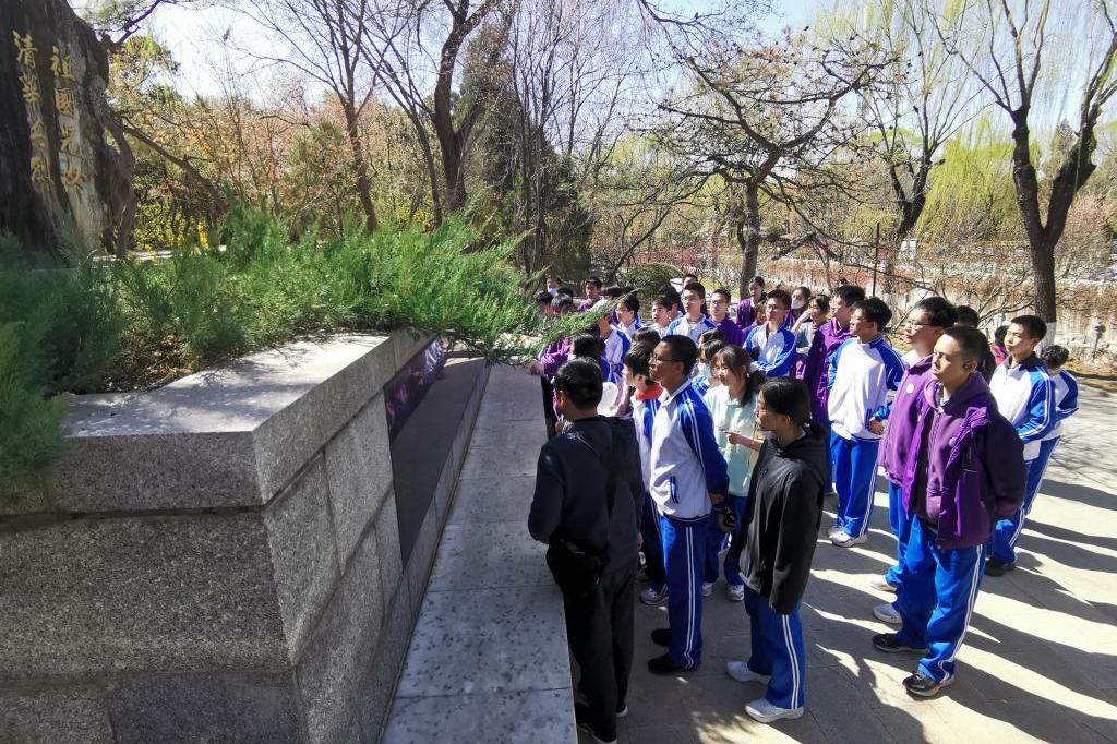 高一11班、15班前往清华大学的英烈纪念碑建筑群进行祭扫
