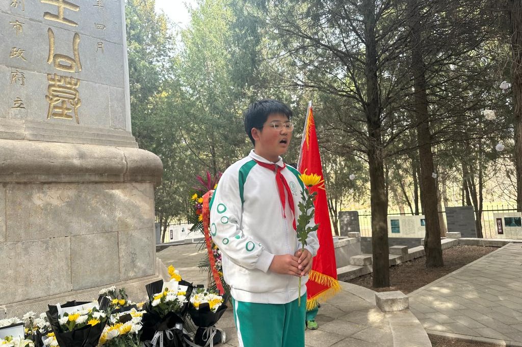 少先队员为英烈们敬献鲜花