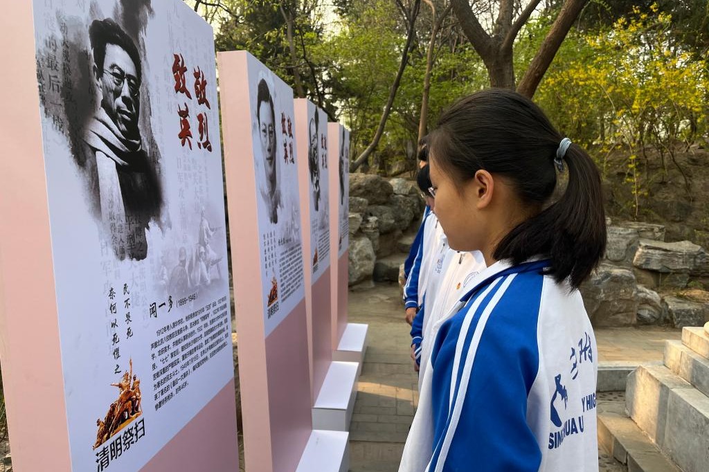 清明时节,庄重肃穆。我怀着无比崇敬的心情祭奠英烈,缅怀他们的英勇事迹。在深沉低回的哀乐声中,我向清华英烈碑三鞠躬,并庄重地献花。韦杰三君“中国要快强起来啊”的呐喊似还回荡在耳边,闻一多最后一次讲演仍历历在目。我将铭记历史,不忘初心,努力学习,为祖国的发展贡献自己的力量,以实际行动告慰英烈在天之灵。