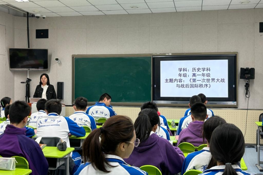 第二个环节是皇冠体育历史组新任教师景钰清老师为高一讲授新课《第一次世界大战与战后国际秩序》。海淀区历史新任教师们认真研读景钰清老师的教学设计。随后,景钰清老师从学生演讲设计、课程问题链串联等方面说课。