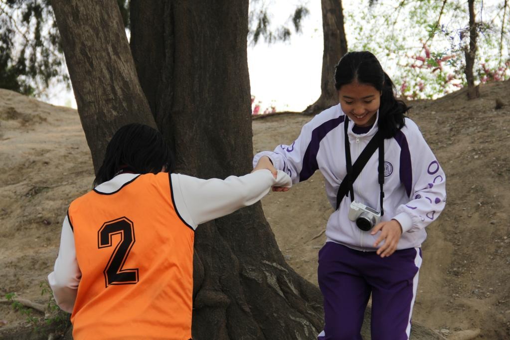 比赛当中许多同学都选择了结伴而行。有时,团队作战会更高效,但是成员进度不一也可能拖慢进度。这时队员们是选择放弃同伴,单独行动;还是选择帮助同伴,集体行动呢?我看到的答案是后者。有的同学在越野过程中不慎摔倒,跑不快了不过她的同伴并没有丢下她,相反她们放慢速度,保持了统一节奏。最终她们顺利到达终点。虽然名次中等,但她们都觉得玩得尽兴。虽然集体行动没有那么快,但这更多了些乐趣,让定向越野活泼起来,动起来!