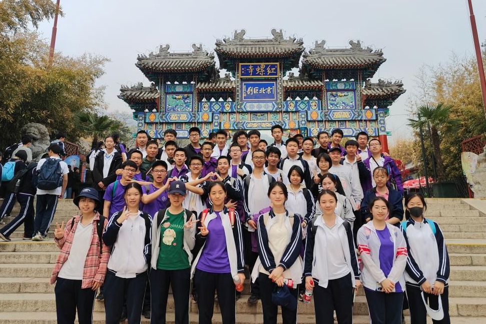 劳动结束后,同学们继续挑战自我,来到位于植树基地附近的红螺寺景区,完成了集体登山活动。