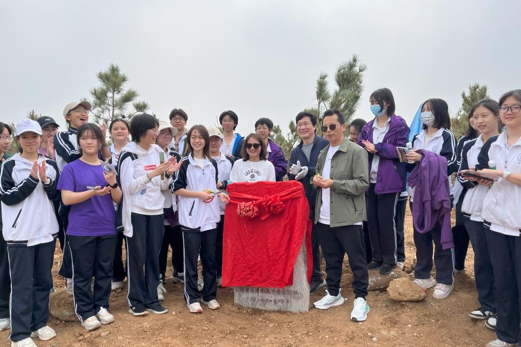 活动结束后,老师和同学们共同为“心愿林”剪彩、揭幕、培土。祝福小树和同学们都能茁壮成长。