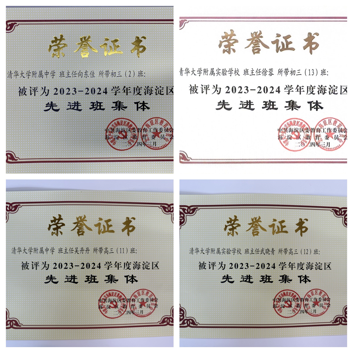 初2102班、初2113班、高2111班、高2112班获得“海淀区先进班集体”荣誉