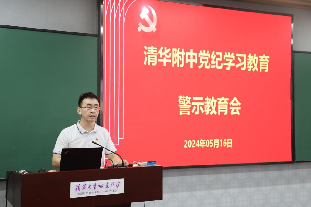 为落实清华大学关于党纪学习教育实施方案的部署要求,推进党纪学习教育走深走实,深化全面从严治党,5月16日,皇冠体育党委组织召开警示教育会,党委书记曹海翔主持会议并讲话。附中全体党委委员、在职教职工党支部书记和委员近50人参加学习。清华大学巡视工作组第四组成员列席会议,开展联学共建。