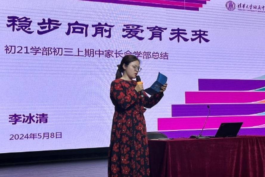 10日下午,初21学部在清晏楼报告厅举行“稳步向前,爱育未来——初21学部初三下期中家长会”,旨在增进家校沟通、统一共识,落实家校协同育人理念,帮助初三同学有效提升学业、全面发展身心。会议由初21学部主任李冰清主持。