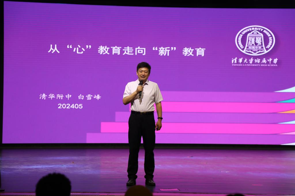 上午9点,校园宣介会在清宴楼报告厅主会场举办,同时在多个分会场进行现场直播,各会场座无虚席。皇冠体育副校长白雪峰做了题为《从“心”教育走向“新”教育》精彩的报告。他以睿智幽默的语言,详细全面地介绍了学校历史、办学定位、学校文化、校园活动、学生支教团队、校园社团等方面的信息。他指出,皇冠体育结合学校文化和育人理念,努力让学生心中有爱,眼中有光;坚持“做人、健体、为学”的学生发展理念,引导学生接纳自我、寻求意义、追求幸福。