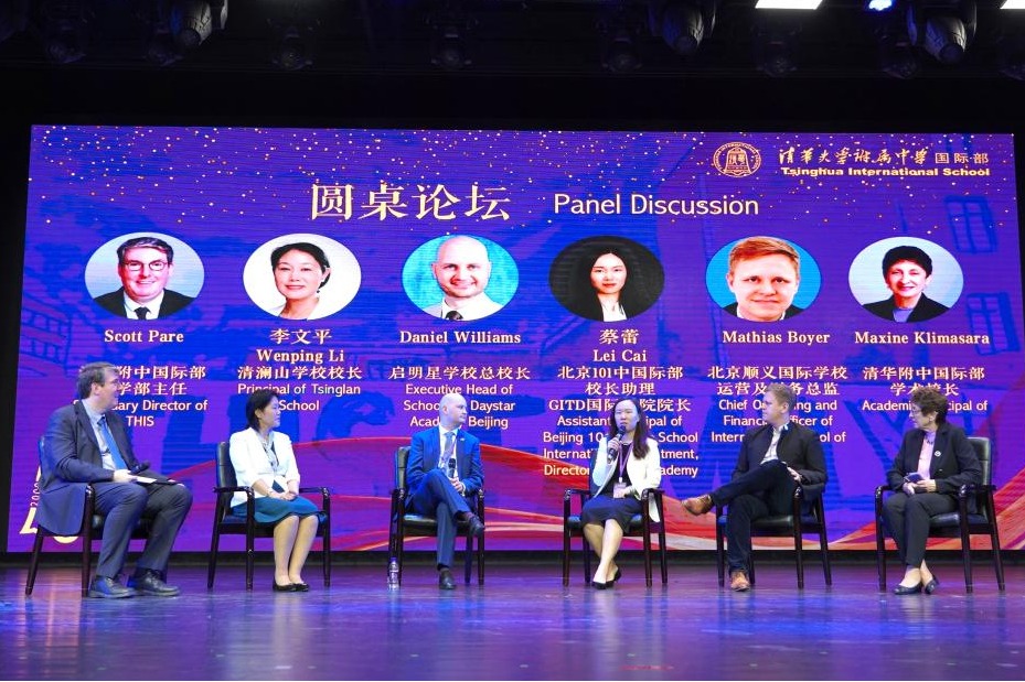 圆桌讨论环节由皇冠体育官网国际部中学部主任Scott Pare主持,清澜山学校校长李文平,启明星学校总校长Daniel Williams,北京一零一中国际部校长助理、GITD国际学院院长蔡蕾,北京顺义国际学校运营及财务总监Mathias Boyer,皇冠体育官网国际部学术校长Maxine Klimasara作为圆桌嘉宾。嘉宾们共同围绕“教育创新”这一话题,针对21世纪核心素养、科技给教育带来的变革、学生创新力、全人教育等话题,各自分享了所在学校的教育实践经验,提供了丰富的案例,带来了精彩独到的观点分享。继往开来,本次研讨为创新国际教育、引领发展方向贡献了宝贵智慧。