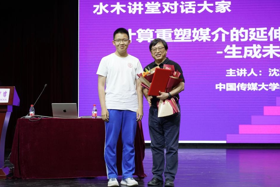 讲座结束后,白雪峰副校长代表学校向沈浩教授颁发了水木讲堂聘书,感谢他带来如此精彩的讲座,并希望以后有更多的机会与沈浩教授进行交流和合作。随后,学生代表为沈浩教授献上了鲜花,表达了全体师生的敬意和感谢。讲座在热烈的掌声中圆满结束。